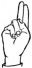 На ћирилици написано РАДЕ ОКОШАНОВИЋ састоји се из 14 слова [?]. Исписано ћириличном једноручном азбуком за глувонеме:
